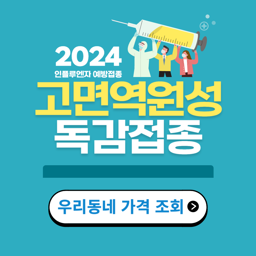 만약 고면역원성 백신 접종을 마음먹으셨다면 우리 동네 병원별 고면역원성 백신 가격조회 해보세요. 독감 접종은 지정 의료기관에서만 접종이 가능합니다.