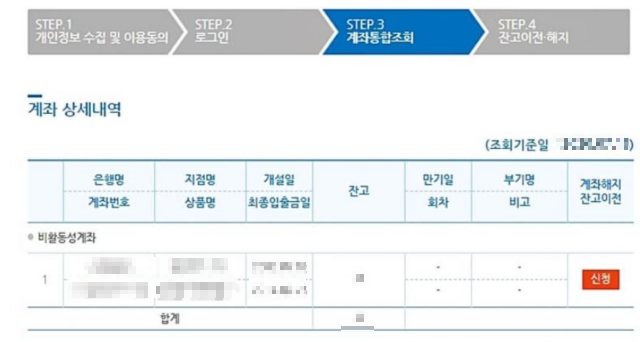 비활동성계좌에서 주거래 은행으로 이체시키기 위해서 계좌 해지 잔고 이전 신청 하기