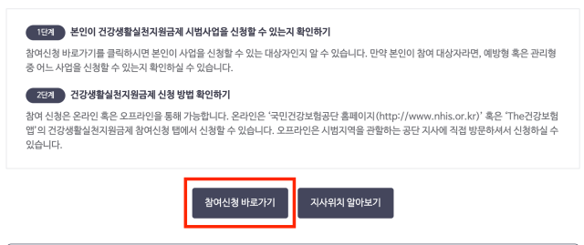 참여신청 바로가기를 클릭하시면 신청 대상자인지 확인할 수 있습니다.