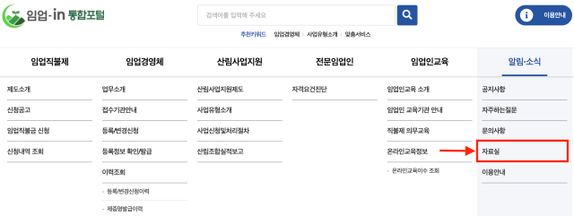 👉 임업in 홈페이지 - 알림소식 - 자료실