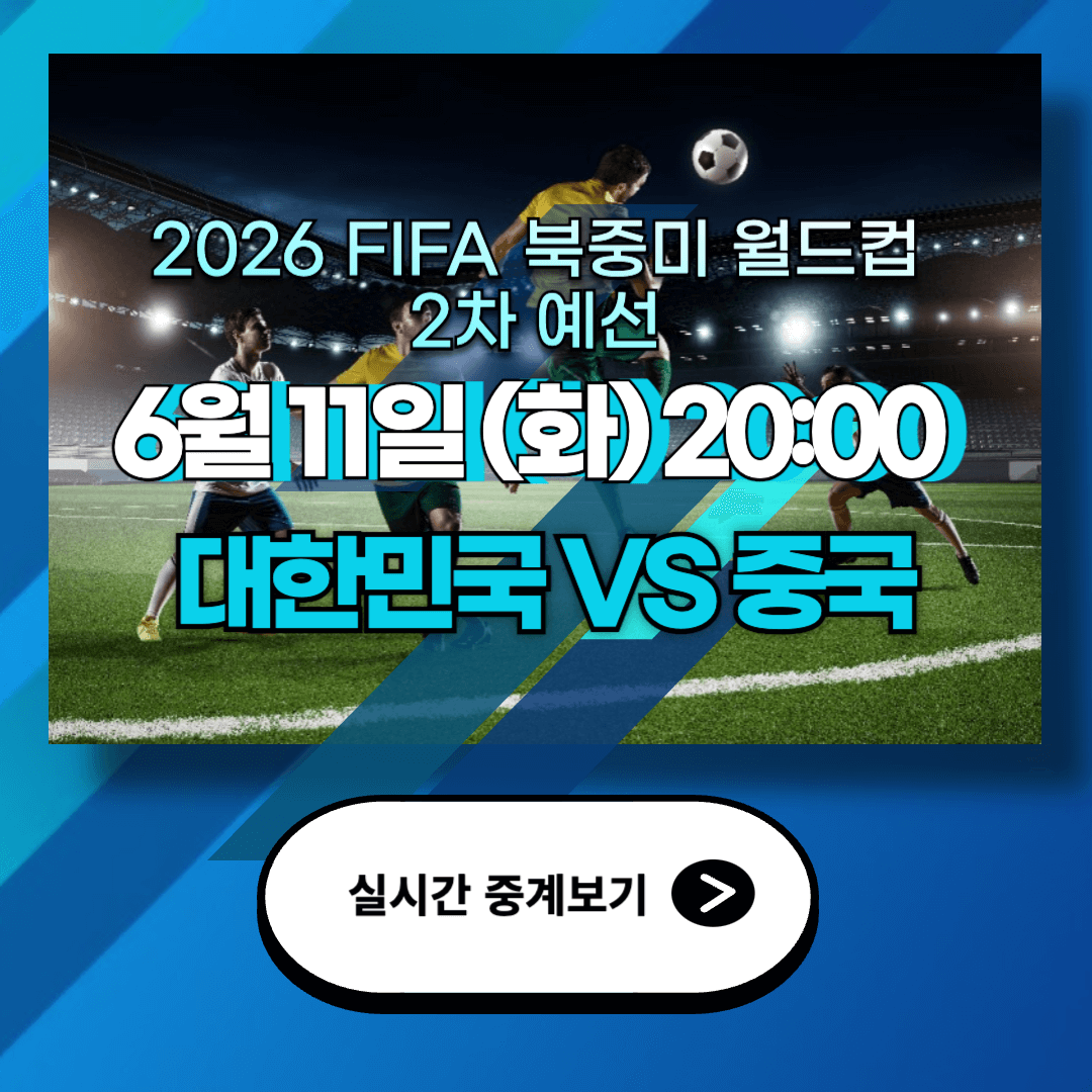 2024년 6월 11일 오후 8시 대한민국과 중국의 북중미 월드컵 2차 예선전이 있습니다.