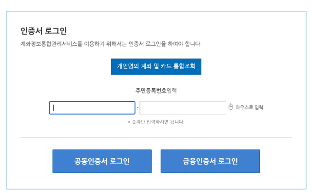 계좌정보 통합 관리 서비스를 pc 환경에서 이용할 수 없다면 모바일 앱을 다운로드 받아 조회해 보시기 바랍니다.